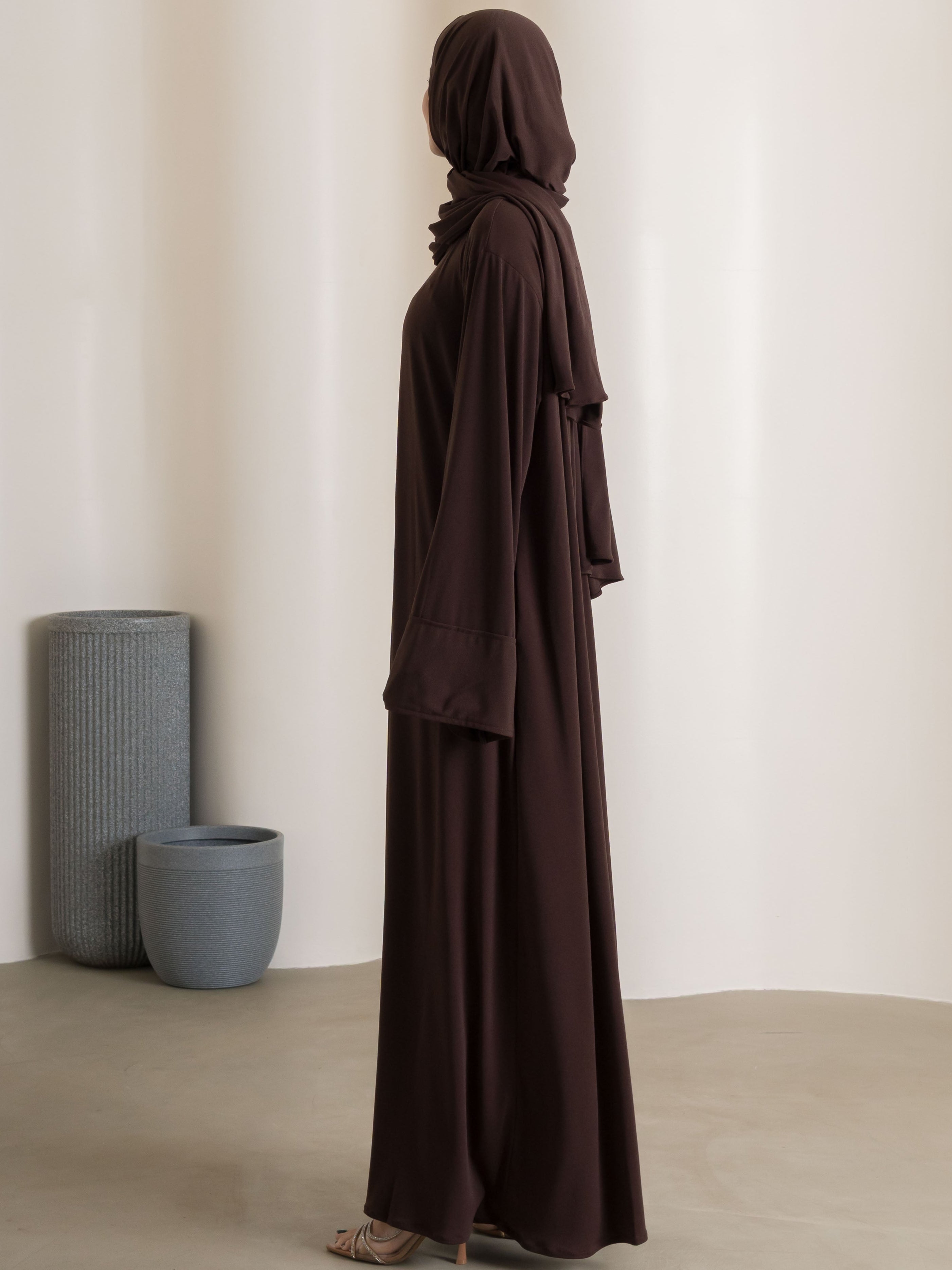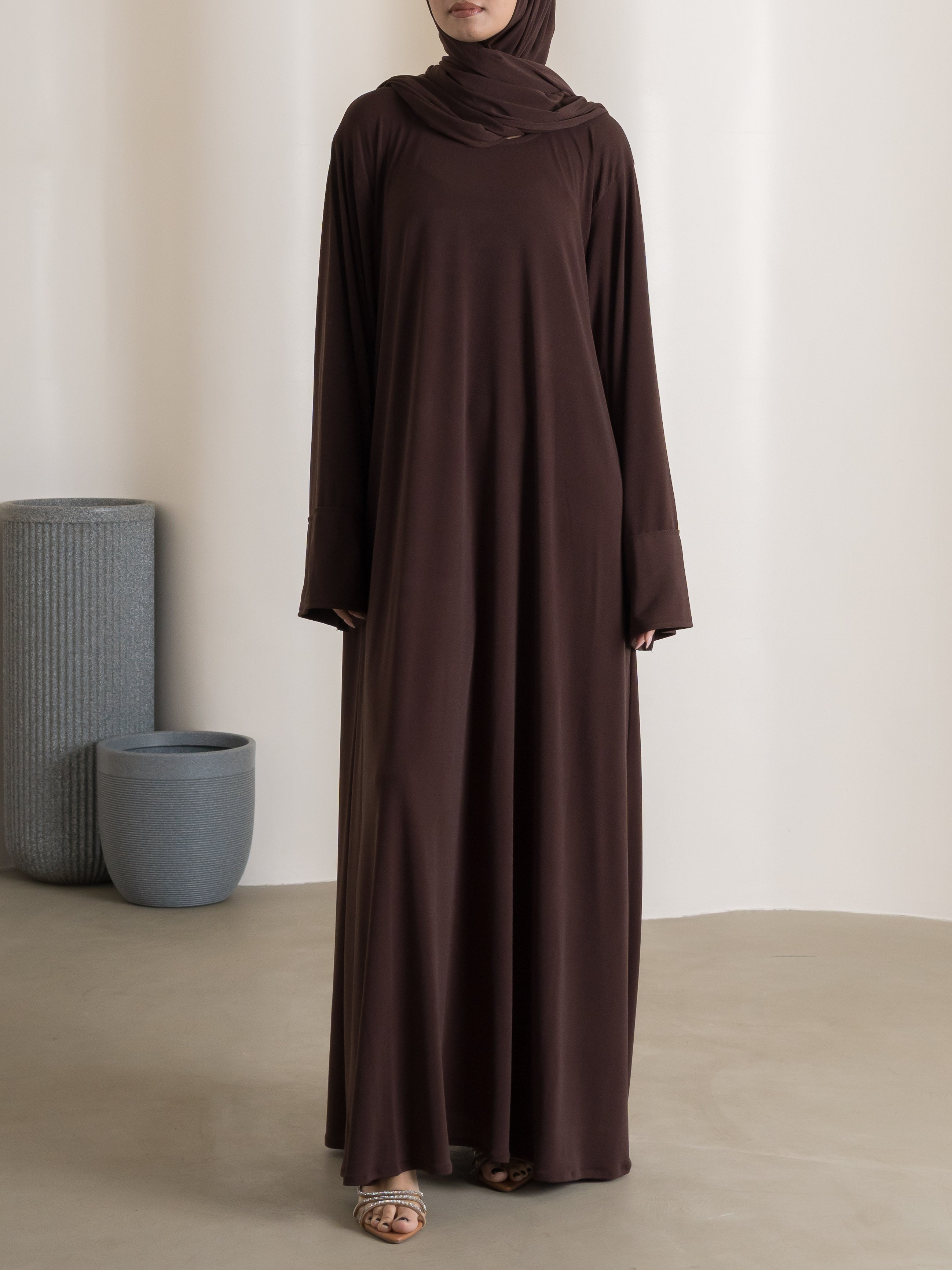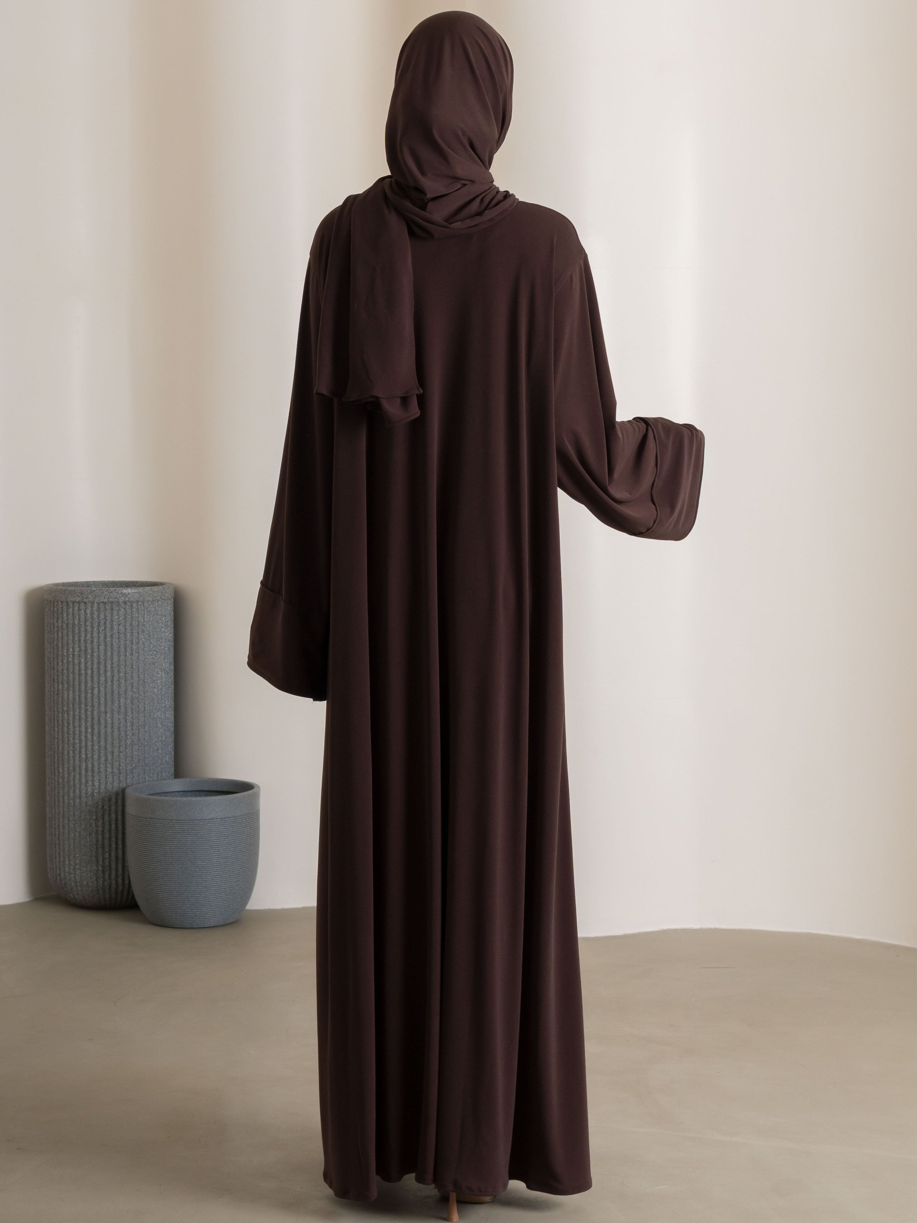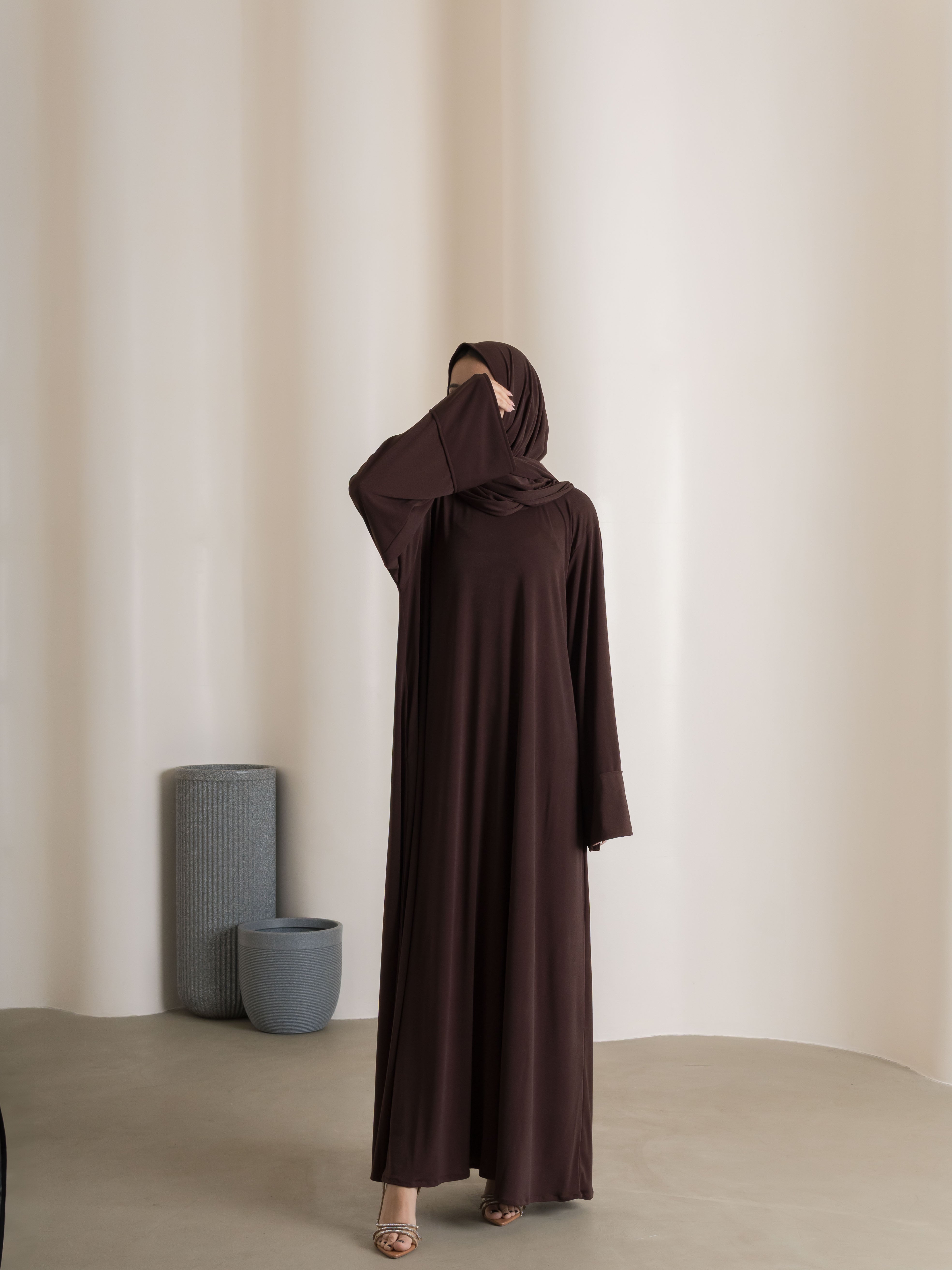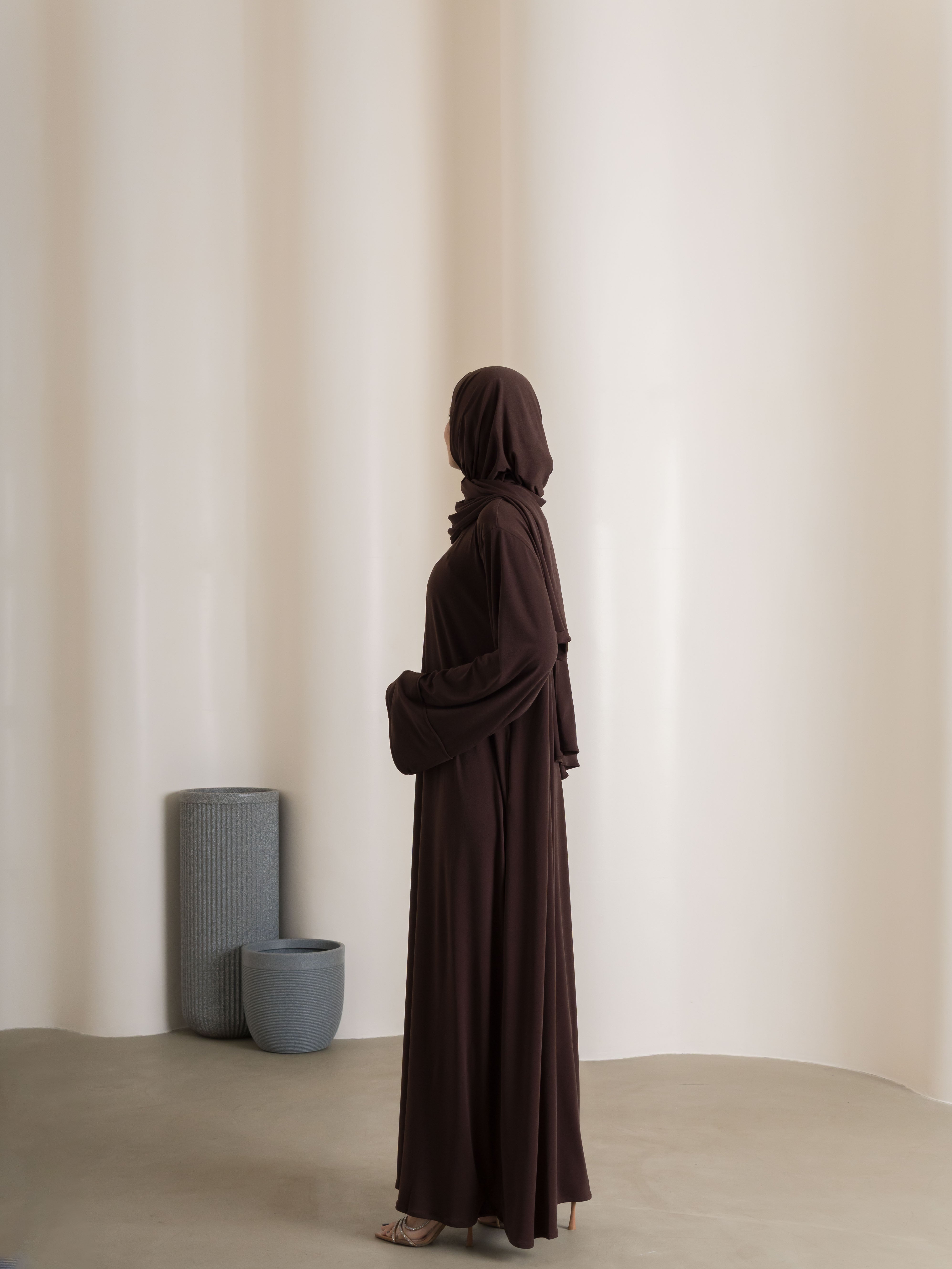 The Essential Moss Crepe Abaya embodies pure elegance in its most refined form. Its clean silhouette drapes beautifully, exuding grace with every step. Paired with a matching hijab, this abaya is the perfect blend of sophistication and modesty.