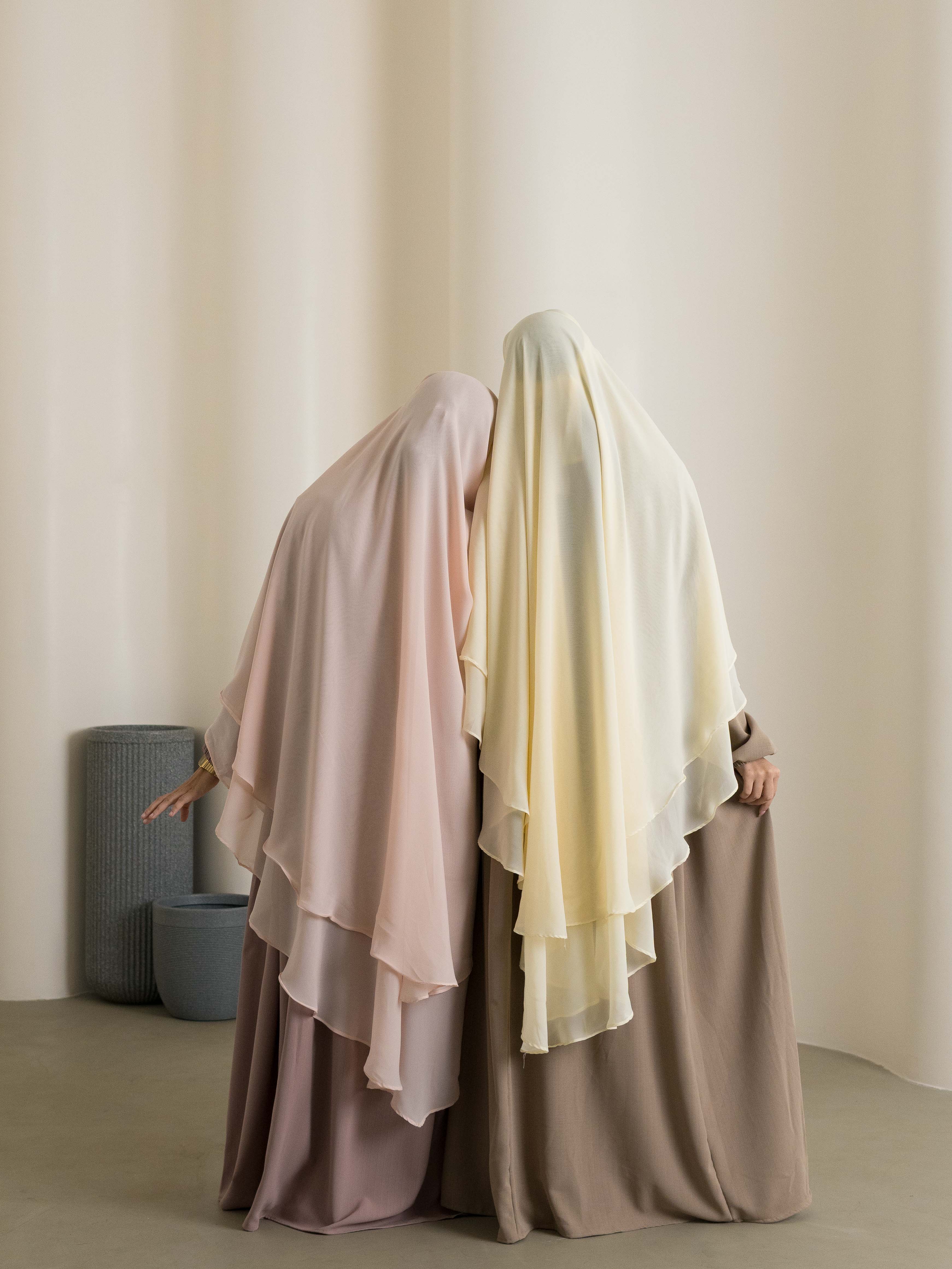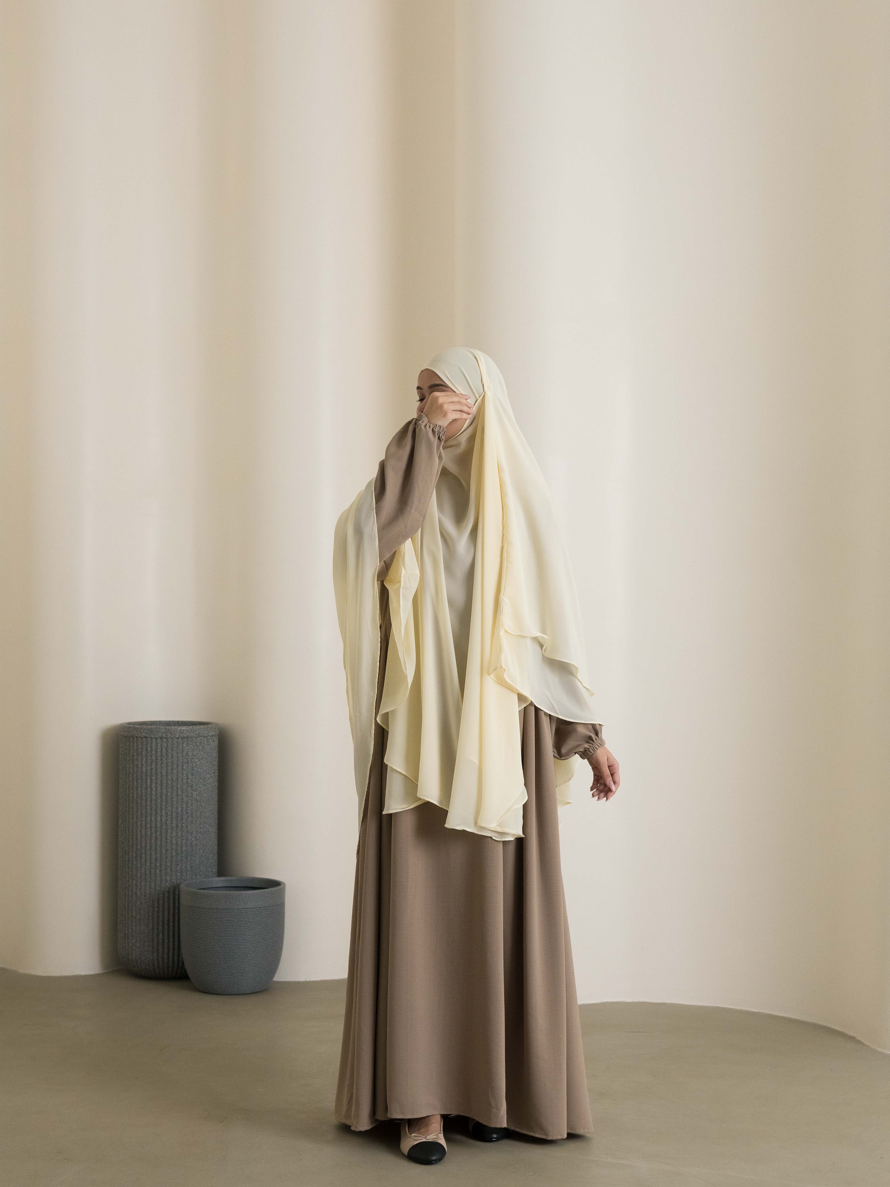 The Zaara Khimar Abaya Set is designed for ease, elegance, and versatility. This set includes a flowy abaya paired with a matching khimar, which can also be styled as a niqab for added coverage.