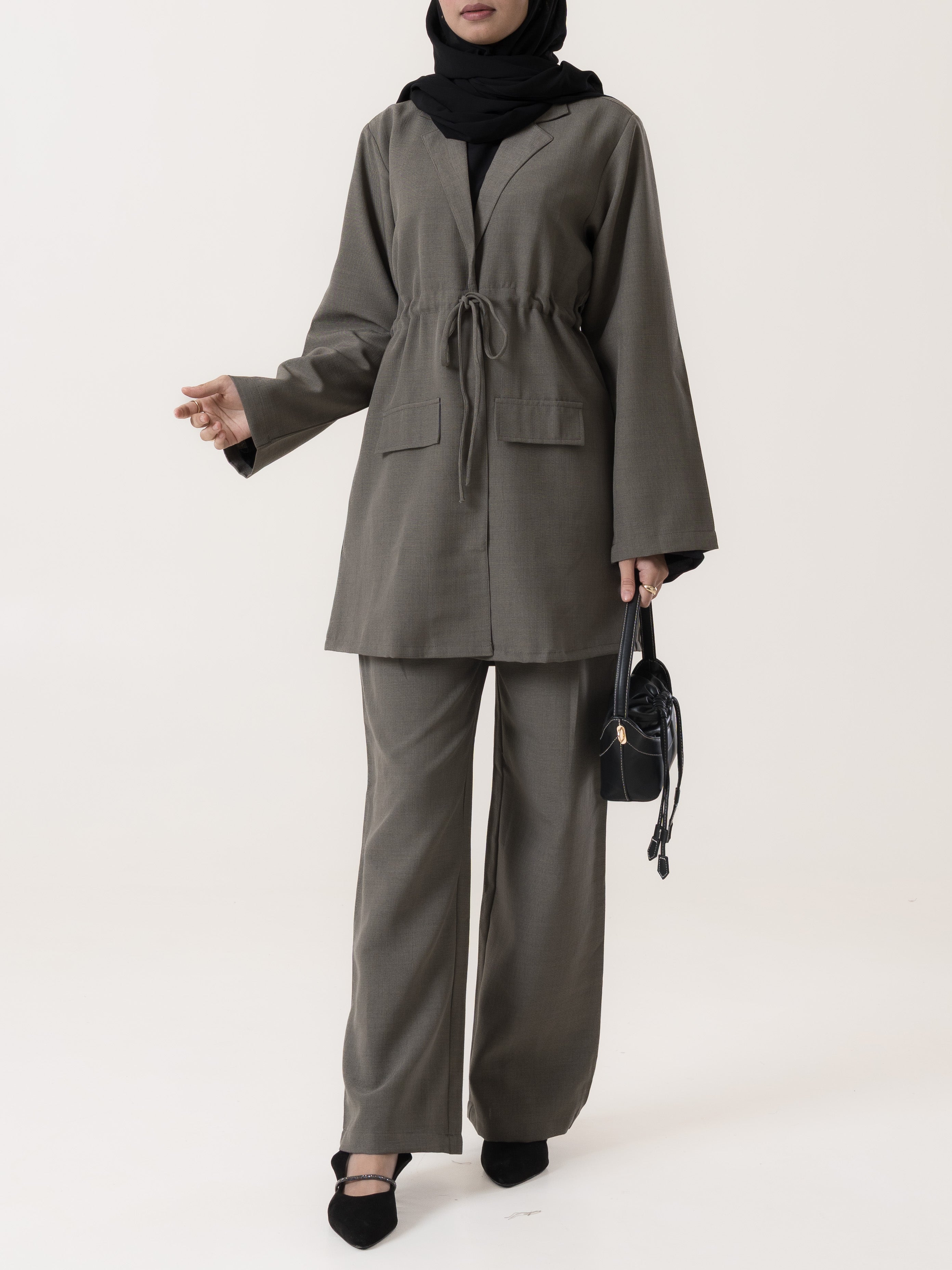 Make a statement in this linen blend co-ord set featuring a cinched waist with a bow detail and a sleek blazer-inspired collar. A perfect mix of structure and flow, this versatile set transitions effortlessly from desk to dinner.