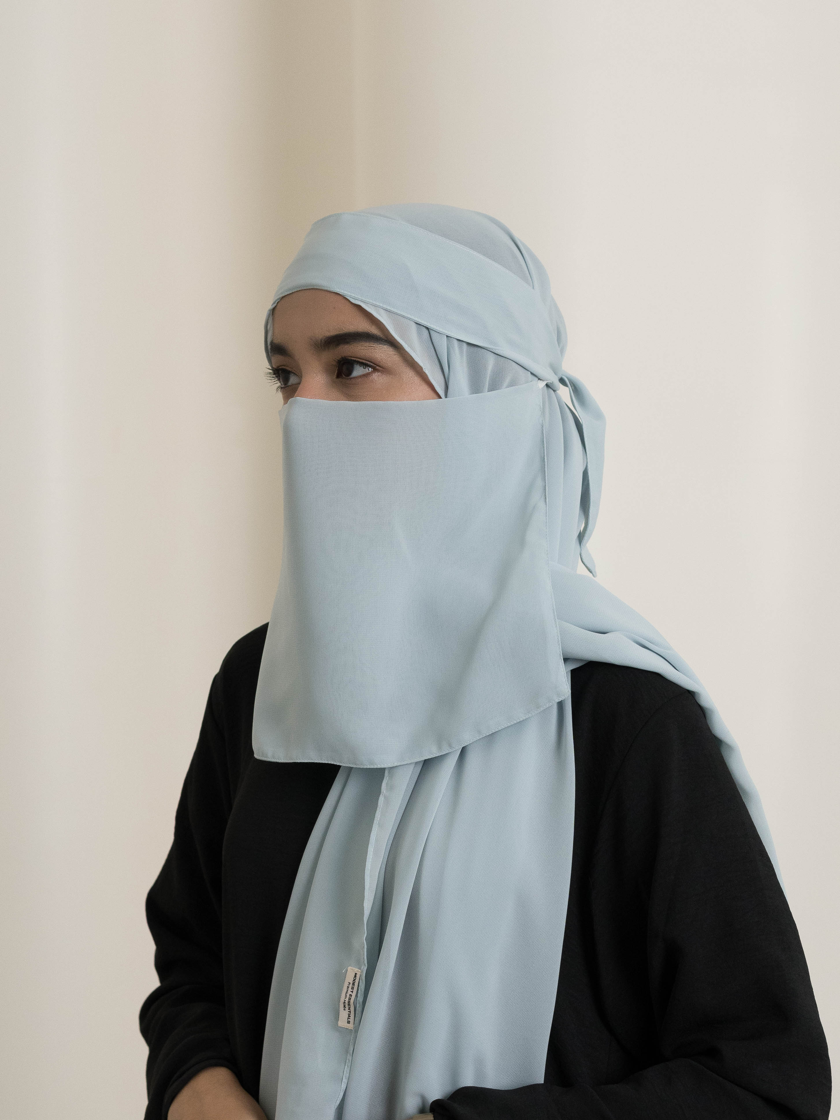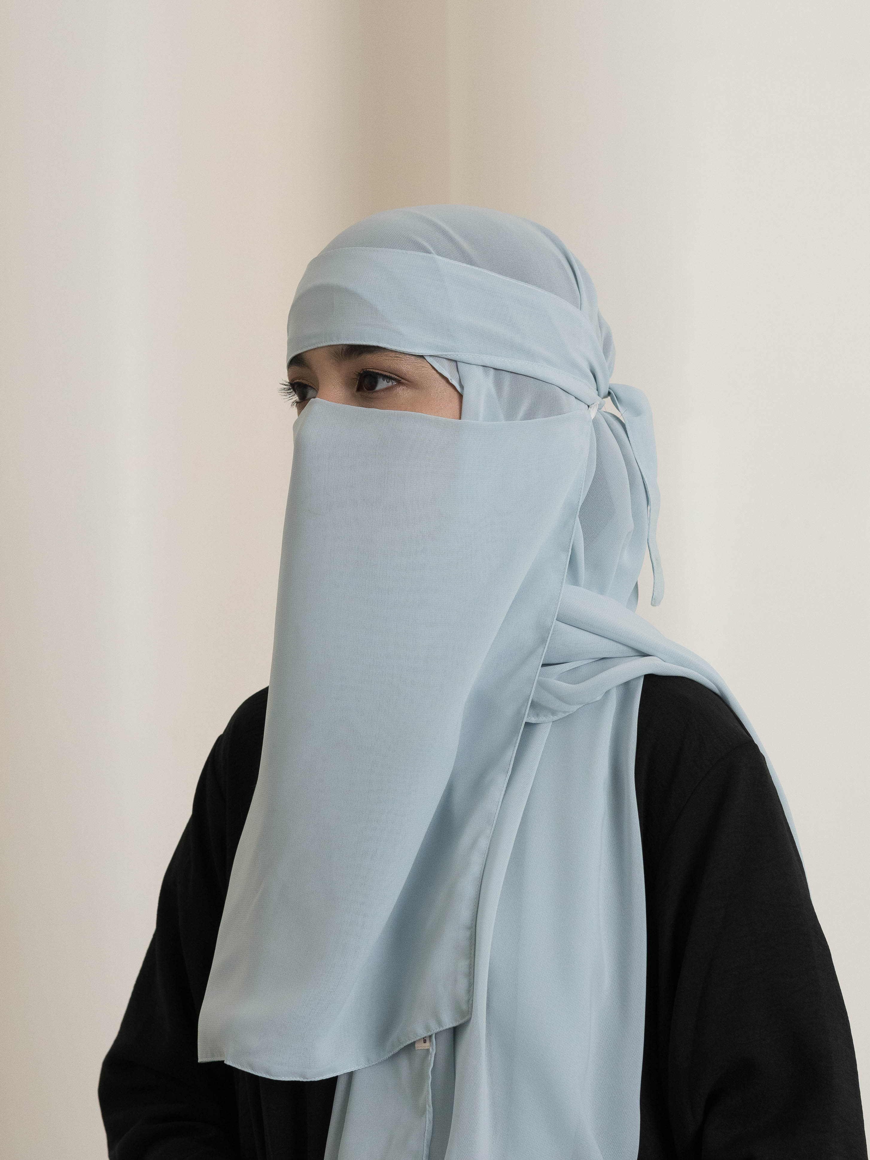 - Mini Saudi Style Niqab (Medium) – A balanced length with a tie-up closure at the back for a secure fit.