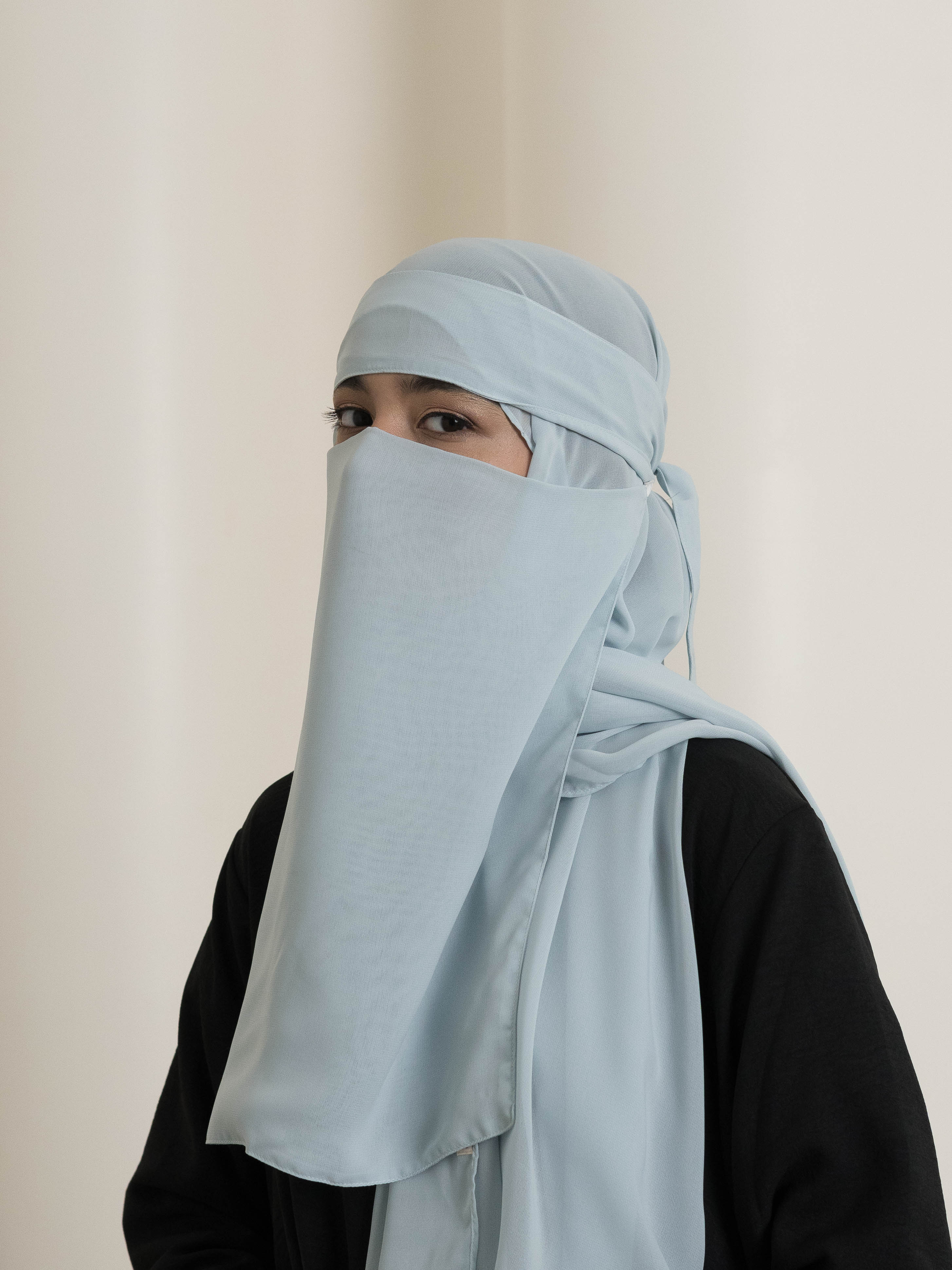 - Half Saudi Style Niqab (Short) – Compact and modest with an elastic fastening for easy wear.
