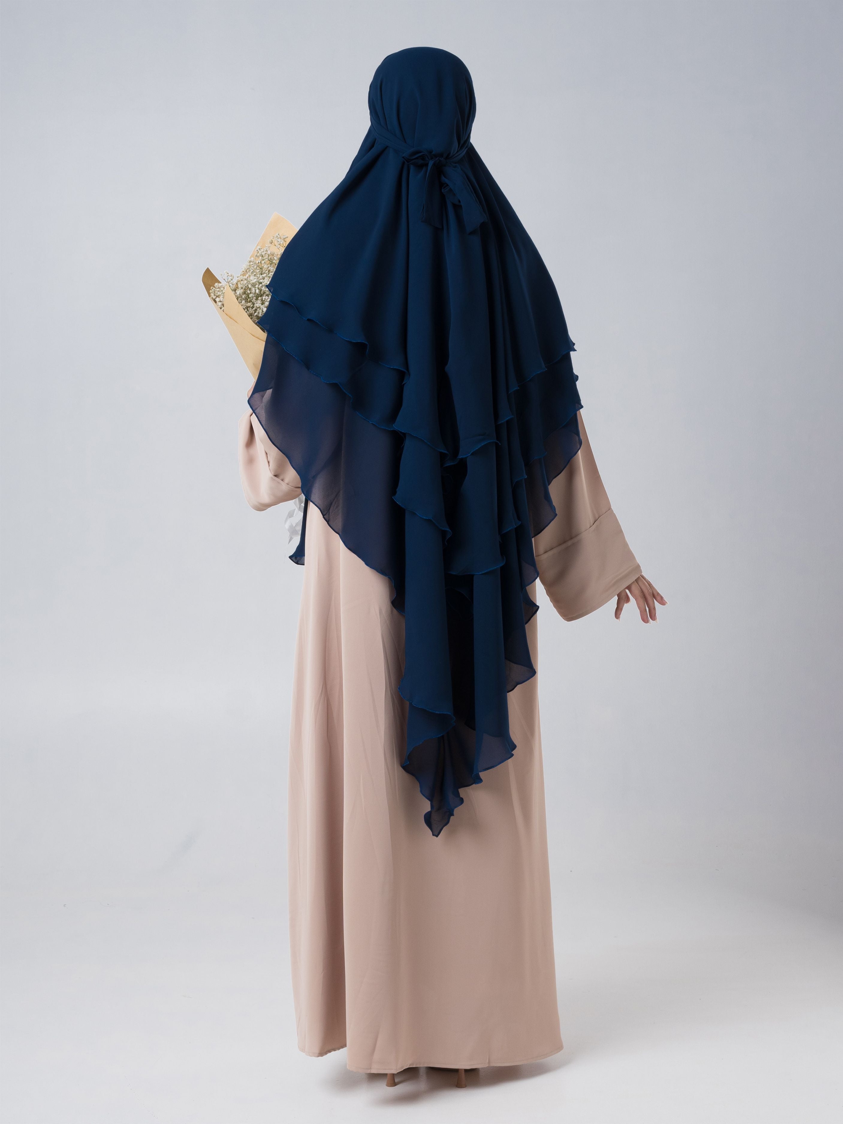 Introducing the 3-Layered Princess Khimar by Modest Essentials, designed for the ultimate blend of elegance and modesty. This stunning khimar features a beautifully tiered, 3-layered design that adds a touch of regal grace to your wardrobe.