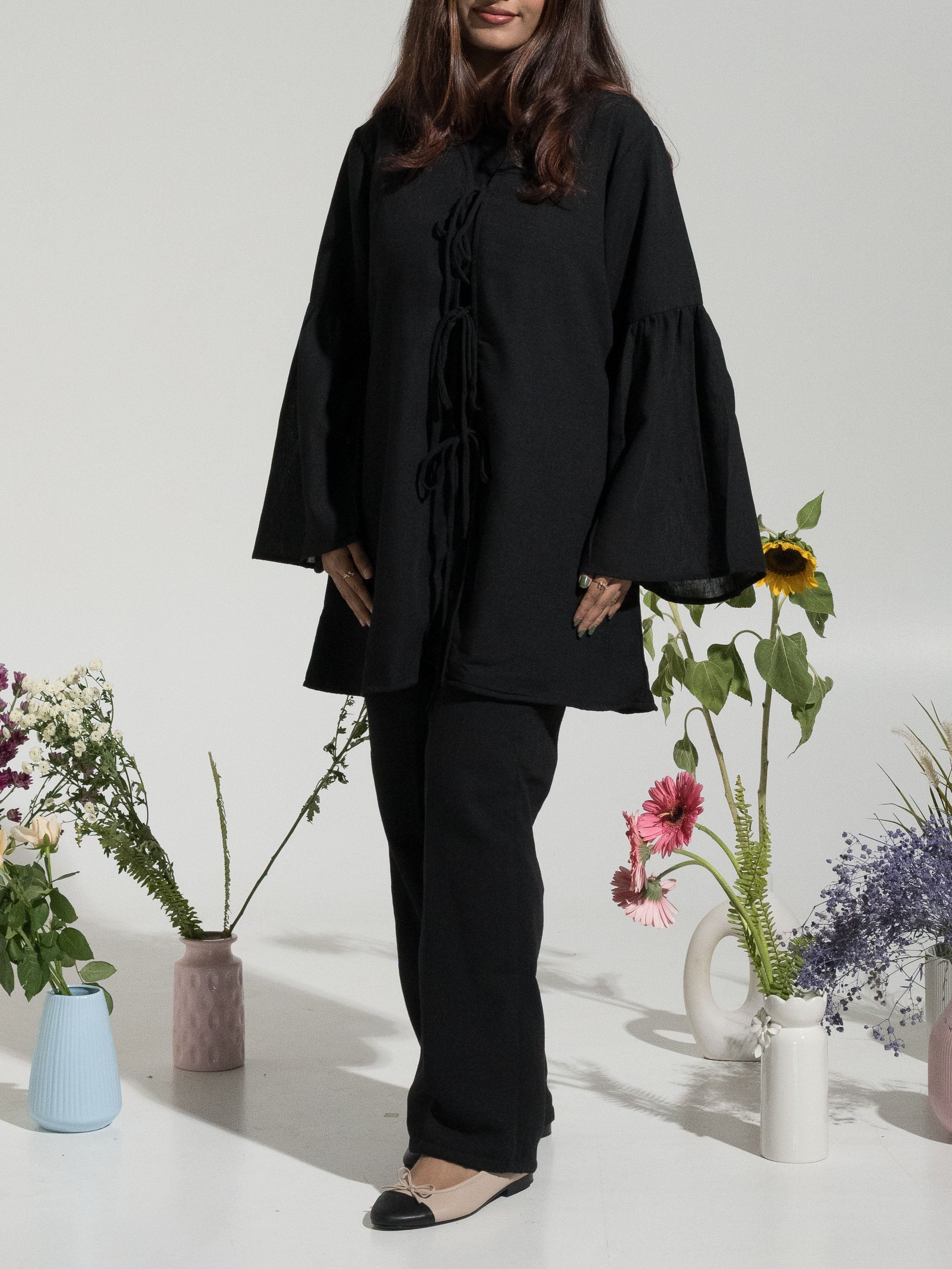 Amaya Bow Tie-Up Set - Black