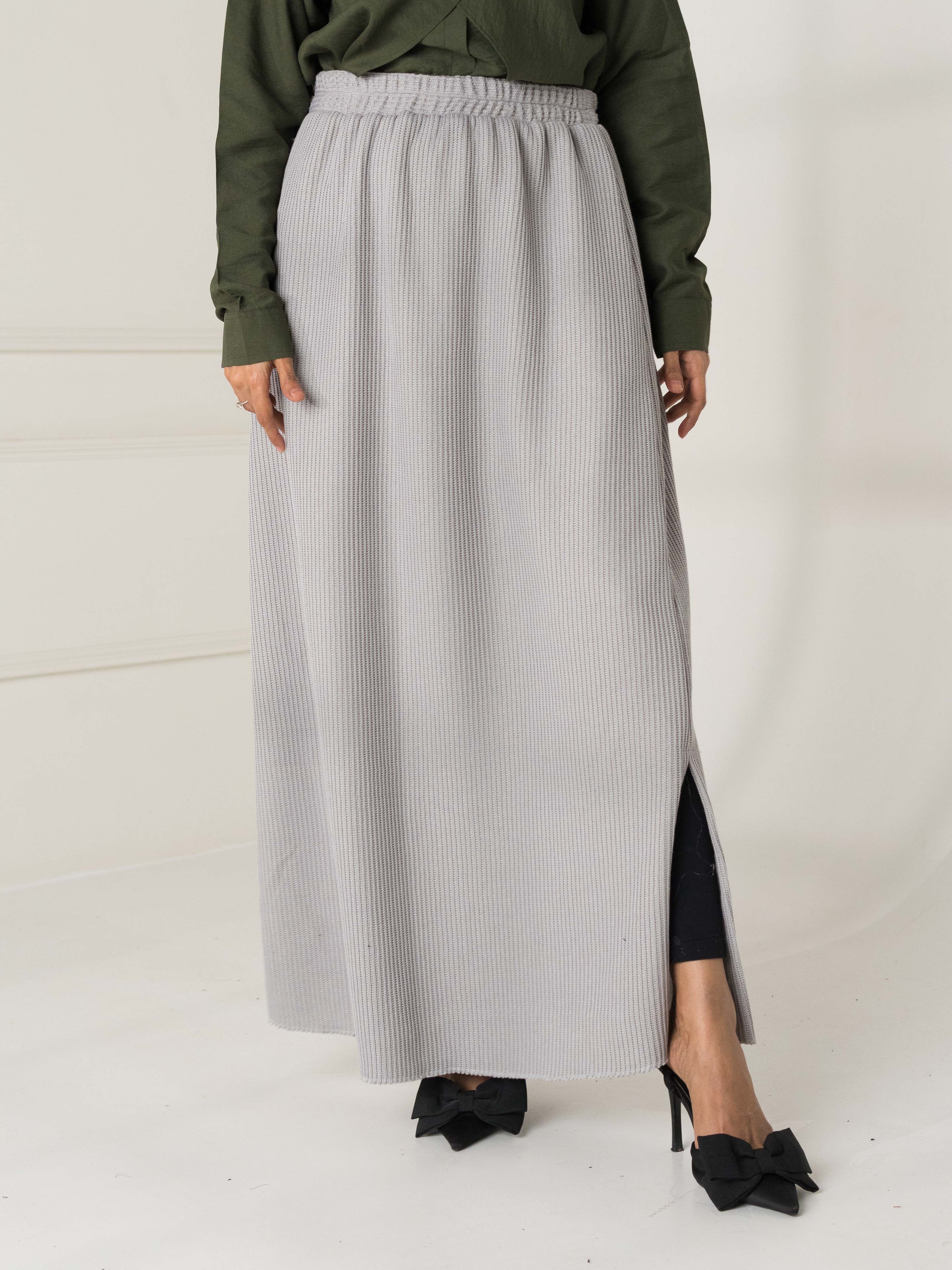The Amelia Knit Skirt in Grey is the perfect addition to your wardrobe for a blend of style, comfort, and versatility. Crafted from soft, breathable knit fabric, this skirt provides a flattering, relaxed fit that can be dressed up or down for any occasion. Its neutral grey tone makes it easy to pair with a variety of tops and accessories, offering endless styling possibilities.