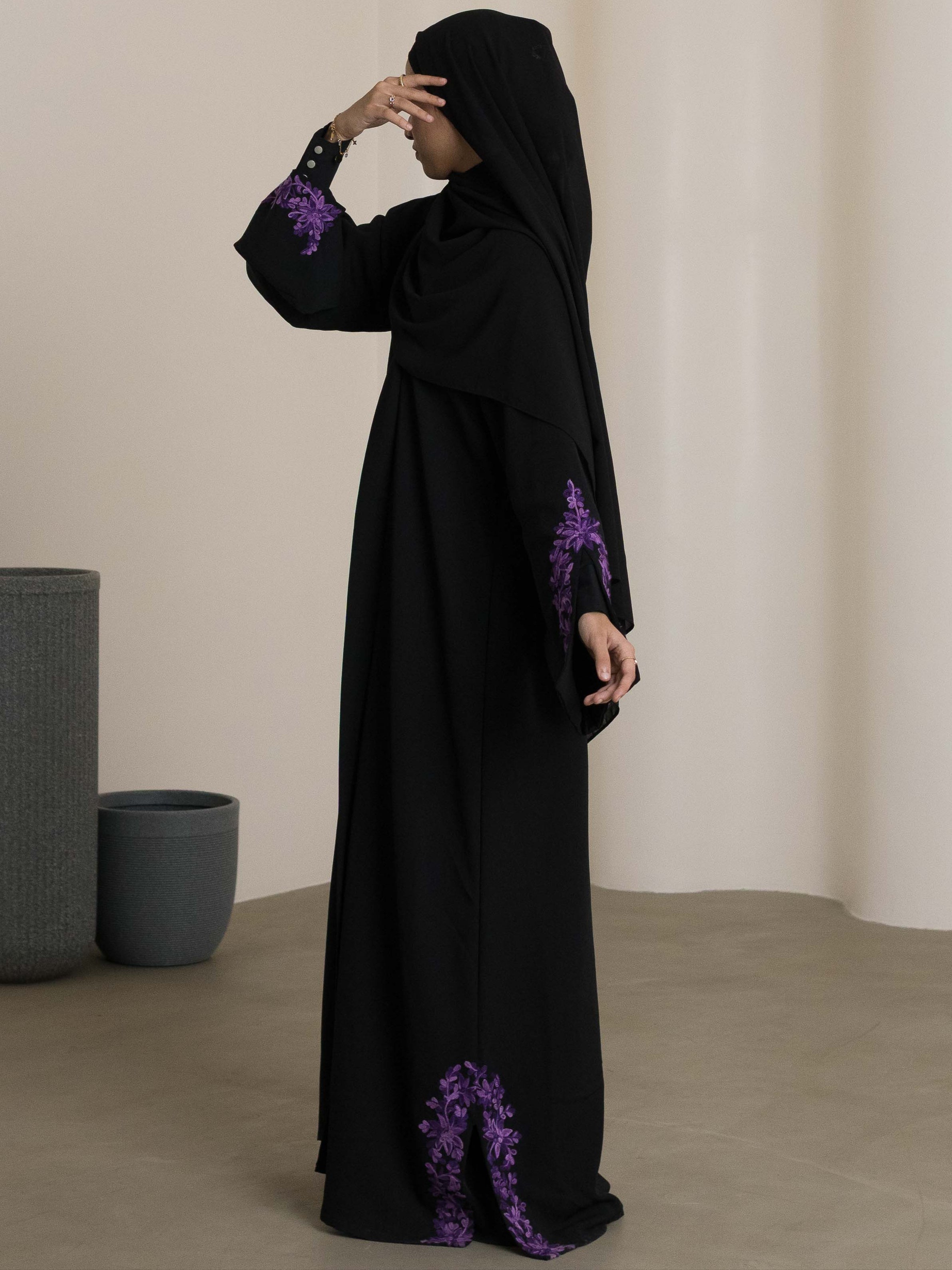 The Baqir Abaya captures the essence of traditional Kashmiri artistry, featuring intricate Kashmiri-inspired designs on the sleeves and hem. With its unique detailing and flowy silhouette, it exudes chic sophistication while ensuring all-day comfort.