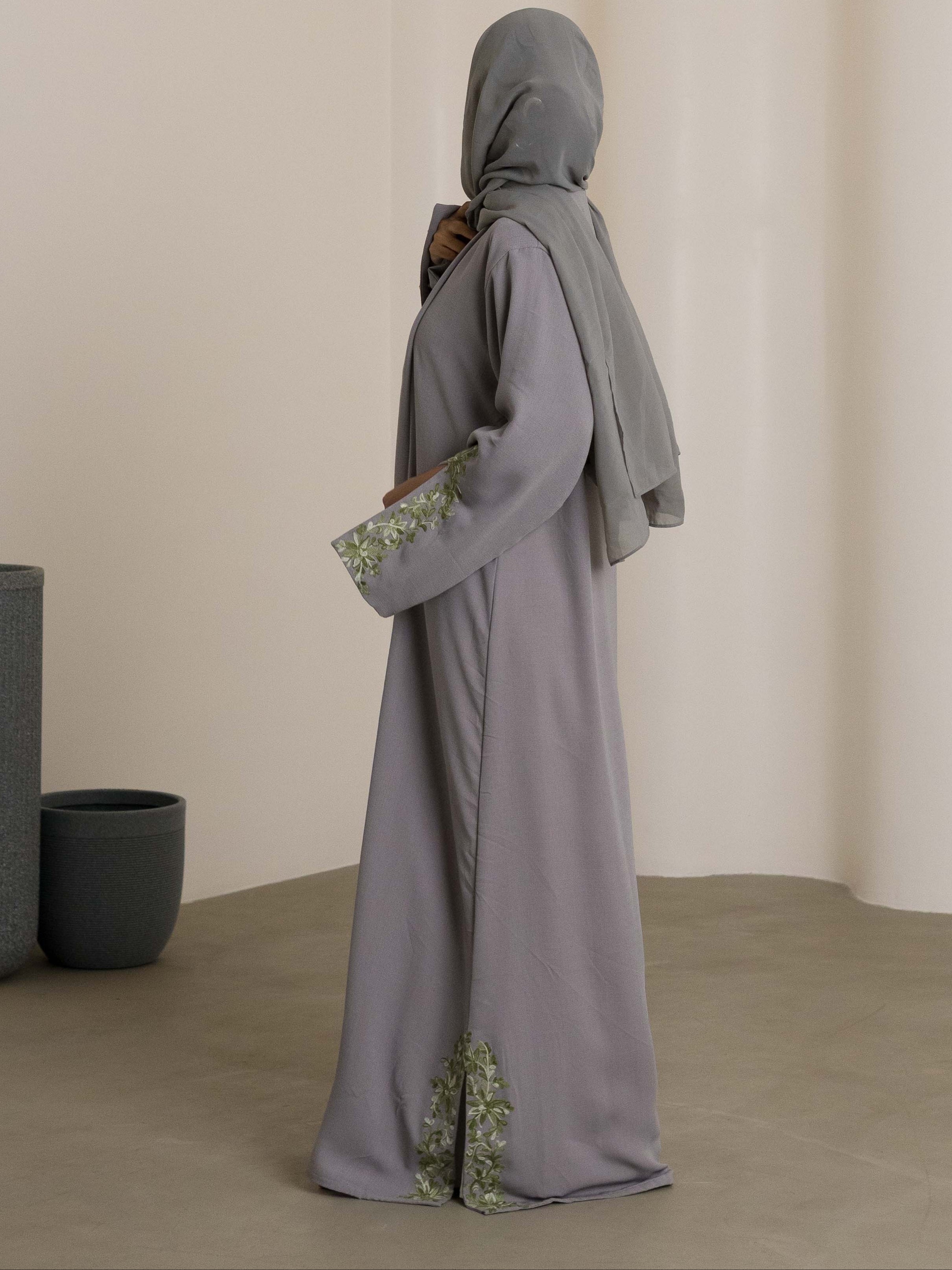 The Baqir Abaya captures the essence of traditional Kashmiri artistry, featuring intricate Kashmiri-inspired designs on the sleeves and hem. With its unique detailing and flowy silhouette, it exudes chic sophistication while ensuring all-day comfort.