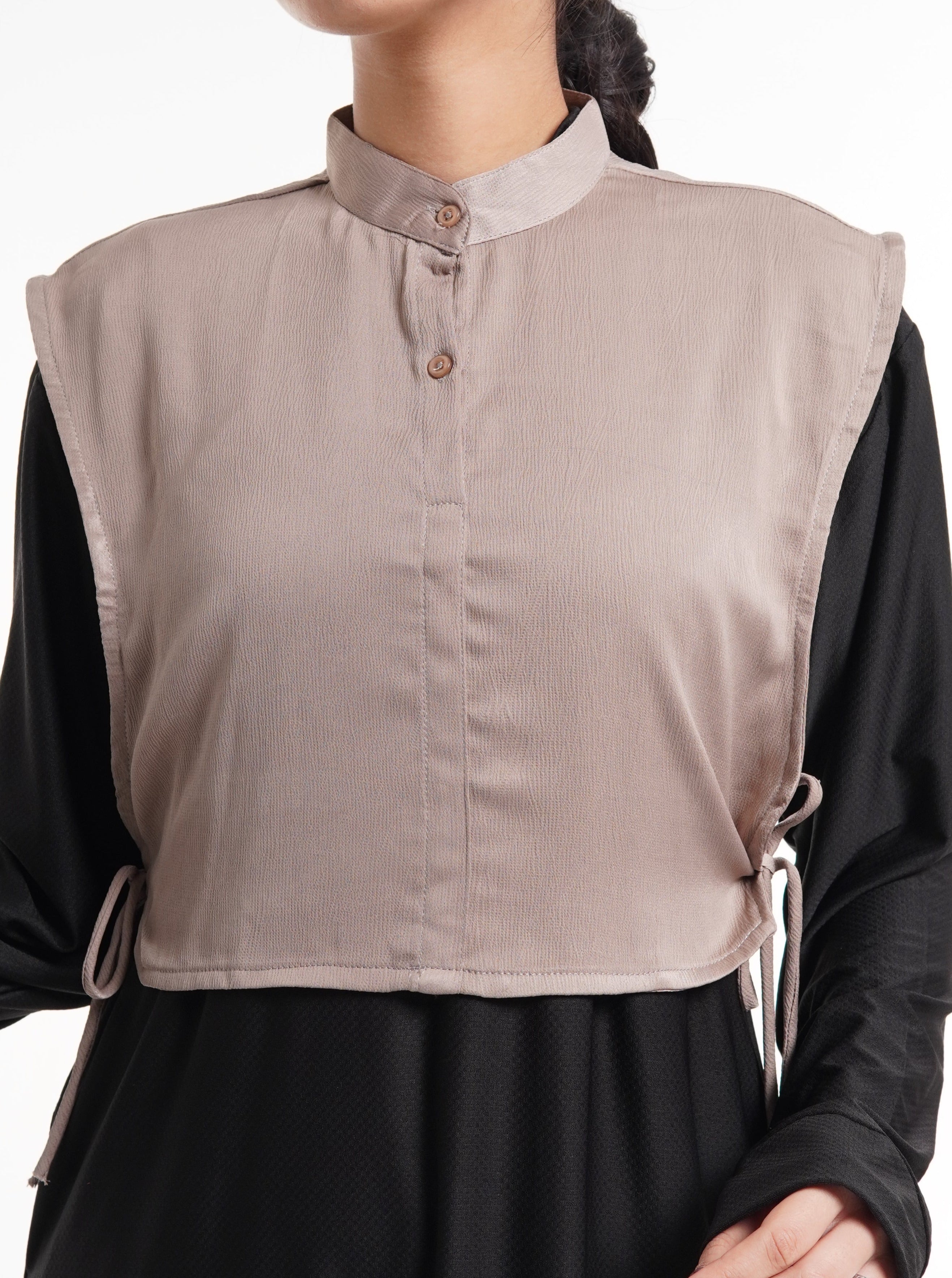Introducing our elegant neck covers, designed to complement your deep neck dresses and tops effortlessly. Crafted from luxurious crinkled satin, these neck covers add a touch of sophistication to any outfit. The front showcases stylish show buttons, creating a chic and polished look, while the adjustable tie-ups on the sides ensure a perfect fit for every body type.