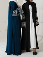 Perfect for both formal and casual occasions, the Kaya abaya combines style and modesty. A must-have two-piece abaya set for those seeking a linen blend abaya with refined details and a unique embroidered sleeve abaya design.
