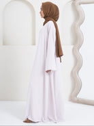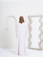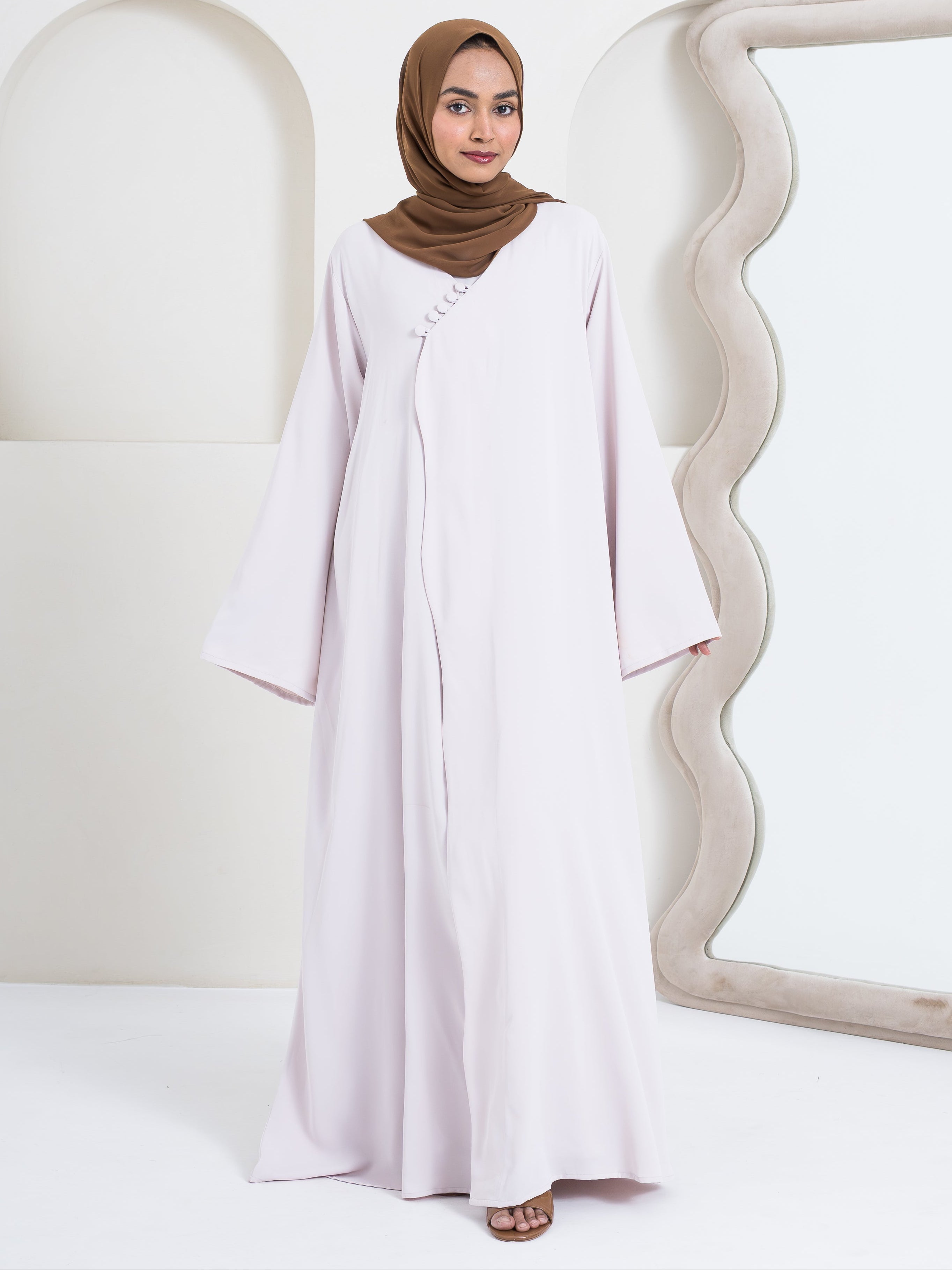 A sculpted overlap-curve abaya designed to fall effortlessly.