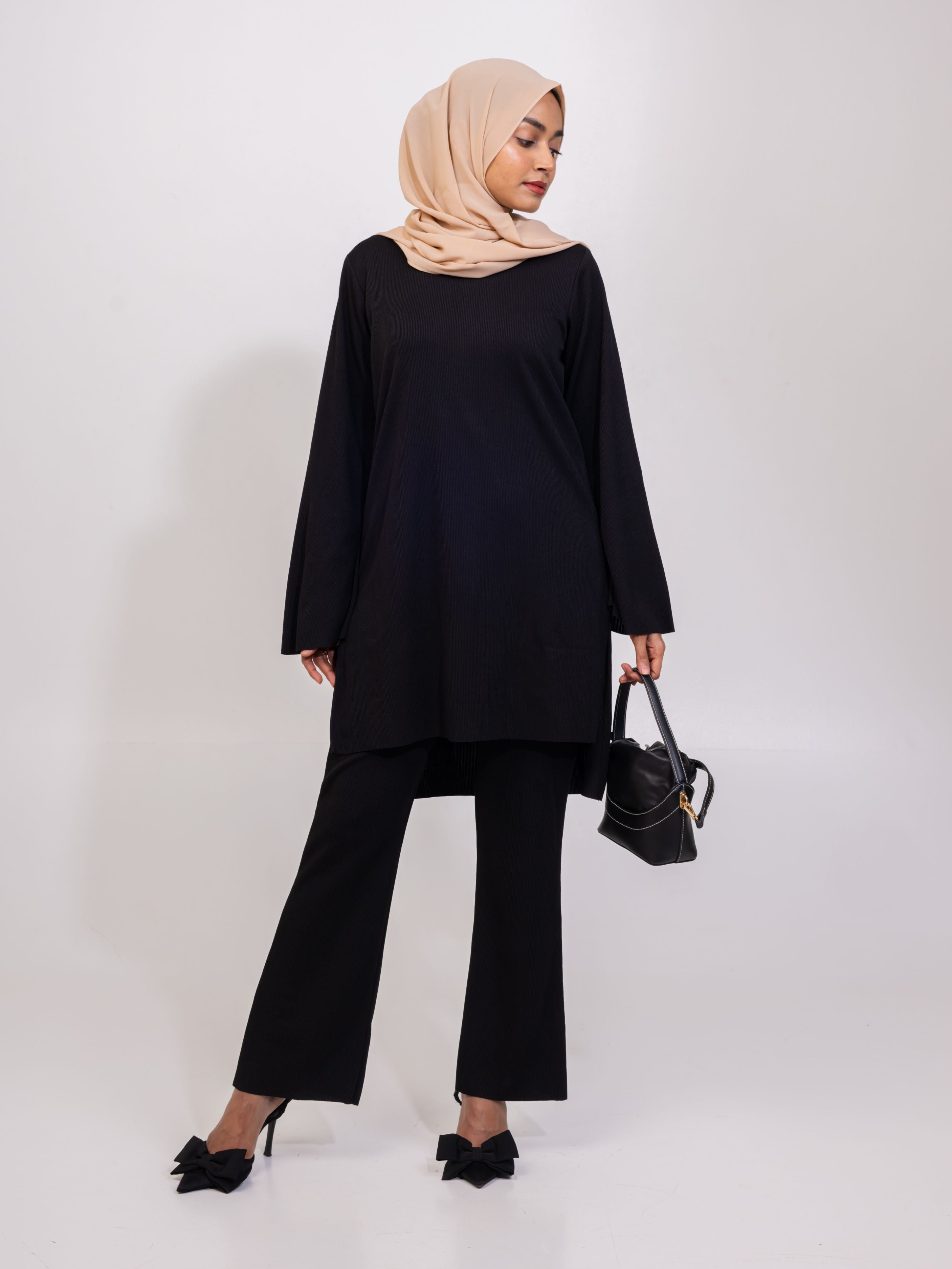 Qasba Ribbed Co-ord Set (Black)