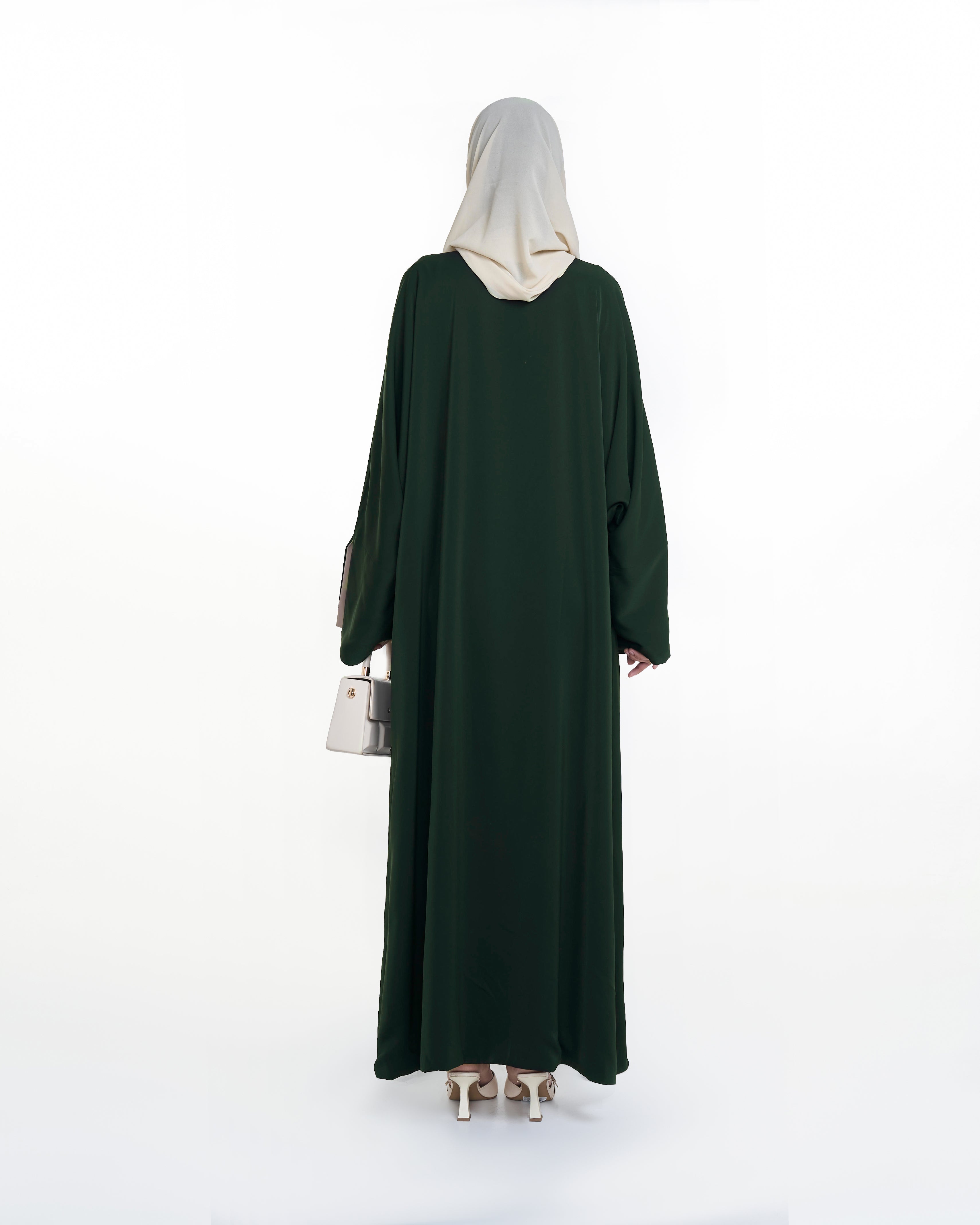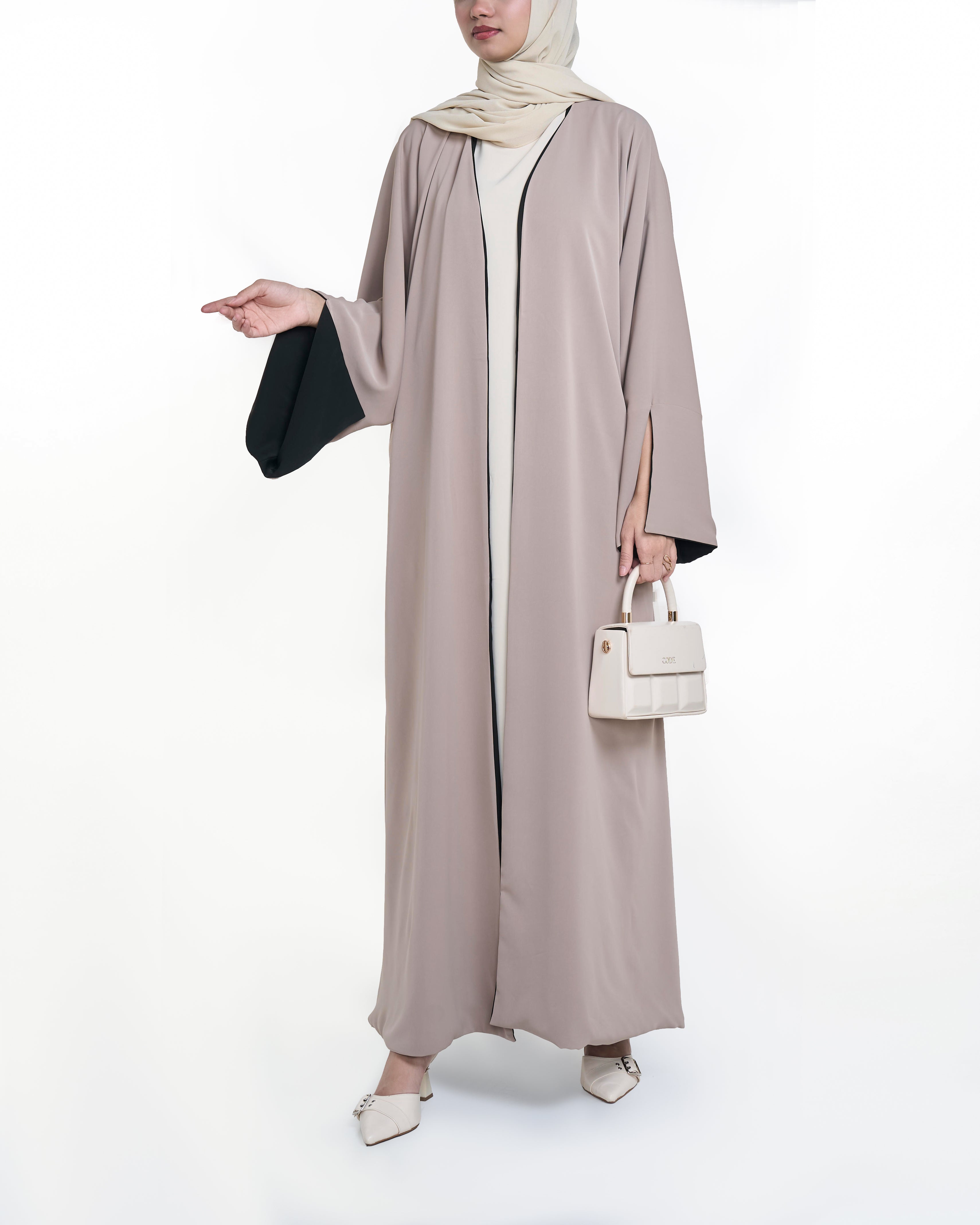 The Raha Reversible Abaya offers versatility and comfort, designed to be worn on both sides, giving you two elegant colors in one. Its flowy and breathable fabric ensures effortless grace for any occasion.