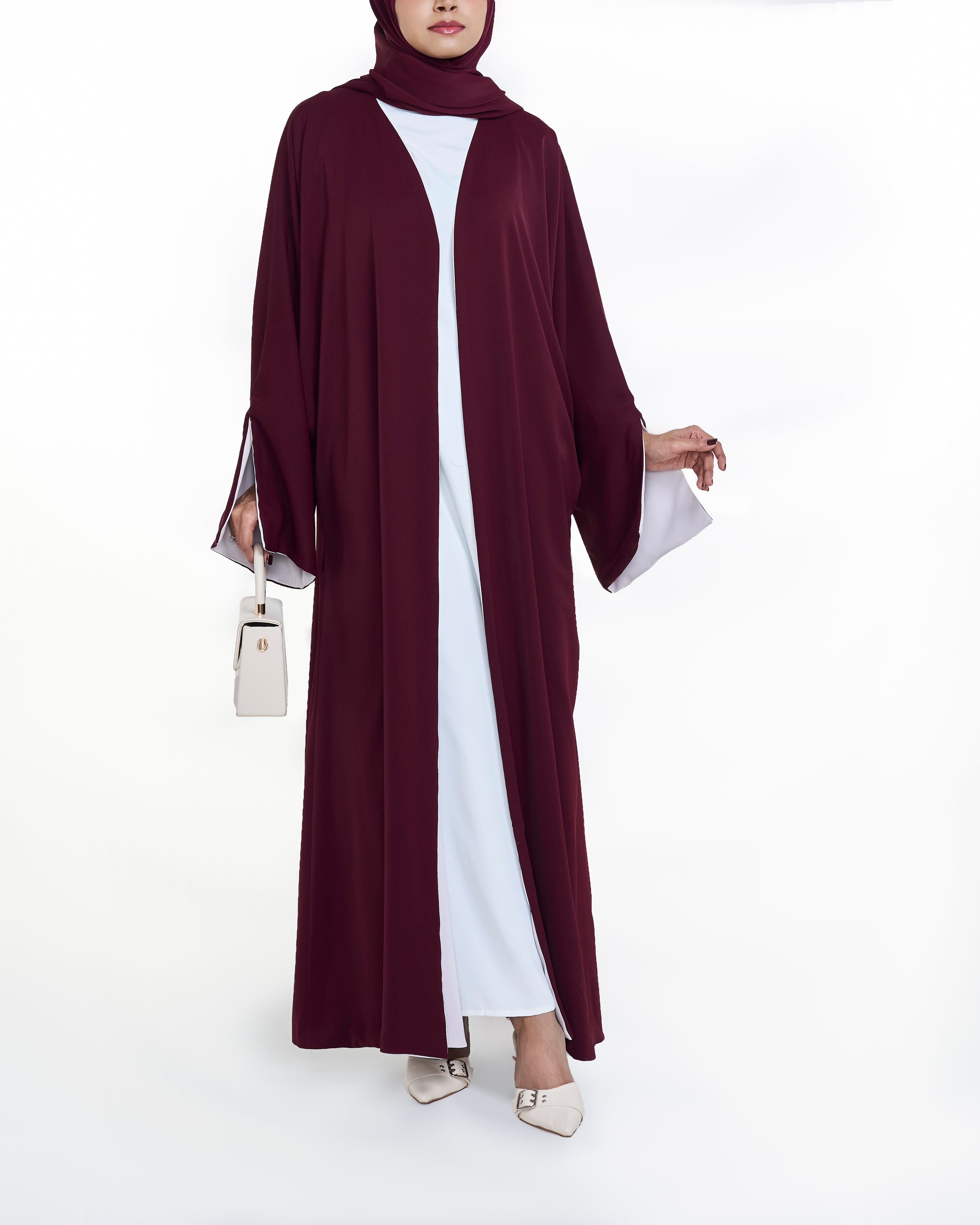 The Raha Reversible Abaya offers versatility and comfort, designed to be worn on both sides, giving you two elegant colors in one. Its flowy and breathable fabric ensures effortless grace for any occasion.